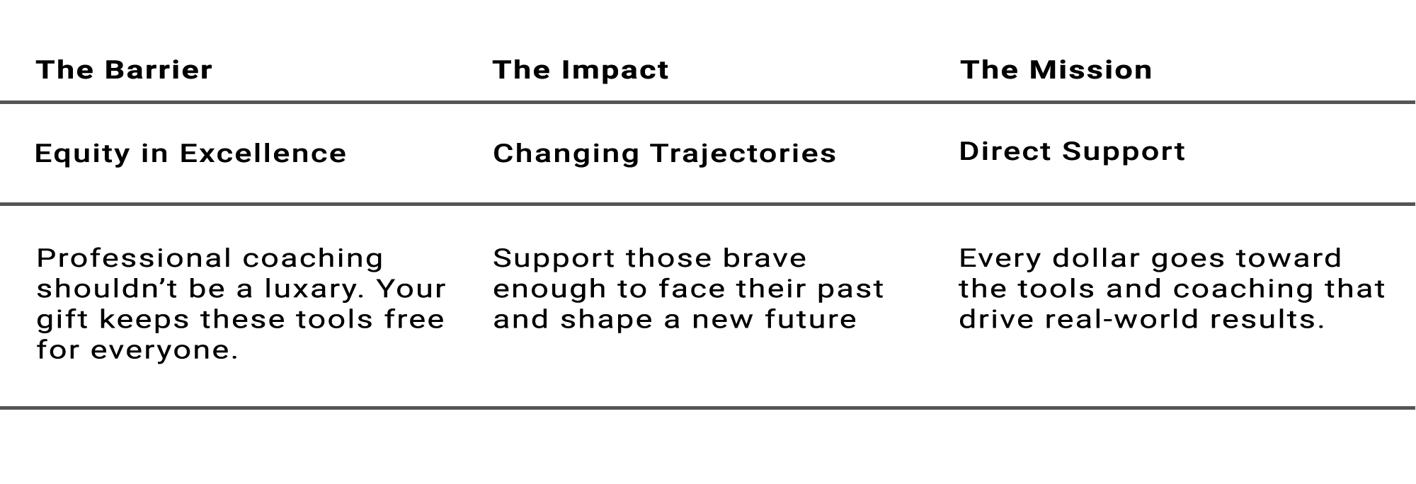 100% of your donation is funneled directly into The Practice. This covers platform hosting, the development of new self-mastery worksheets, and the time required to provide live coaching sessions to those who cannot afford it.
